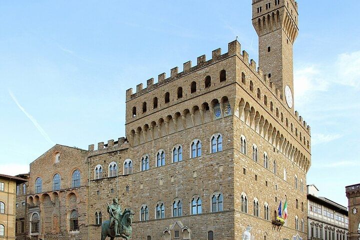 Marvel at the world-famous Duomo, with its towering Brunelleschi dome dominating the skyline. Continue to Palazzo Vecchio, the political heart of Florence, overlooking the sculpture-filled Piazza della Signoria.